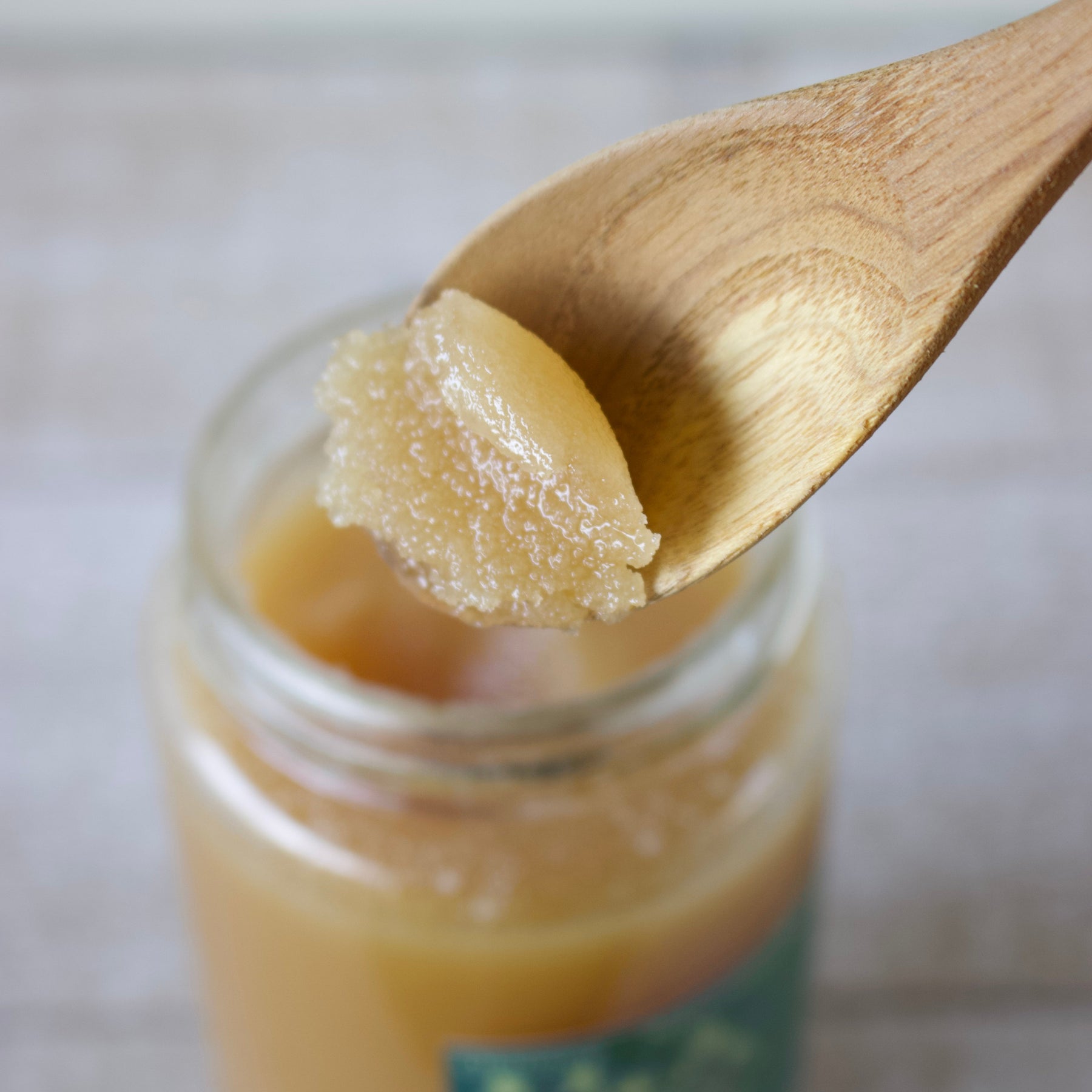 気温の変化によって、はちみつが白く固まることがありますが、自然由来の成分によるもので品質に問題はありません。温めるとゆっくりと溶けていきます。